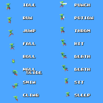 The Goblin has these animations: